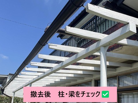 今回は雹による衝撃で横桟の歪みやサビも見られたので、横桟もすべて撤去しました。