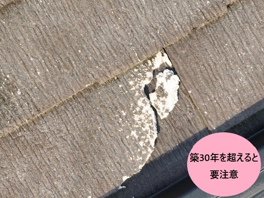 築30年を過ぎると、劣化は屋根材そのものに及びます。