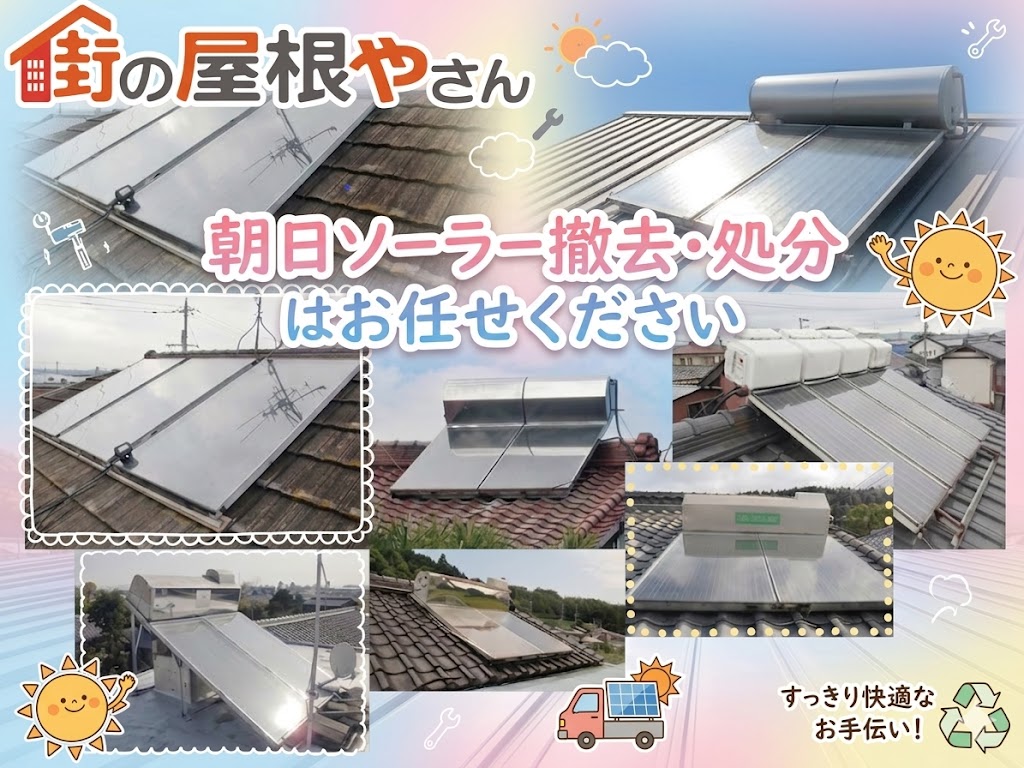 街の屋根やさん上尾店では・朝日ソーラー撤去・屋根点検・屋根補修・お見積り無料で対応しております。