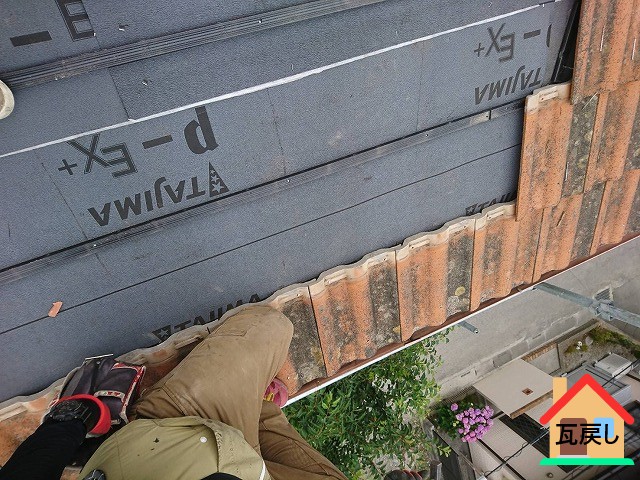 葺き直し工事とは、今ある瓦は再利用し、下地(防水紙・桟木)だけを新しく入れ替える工法です。