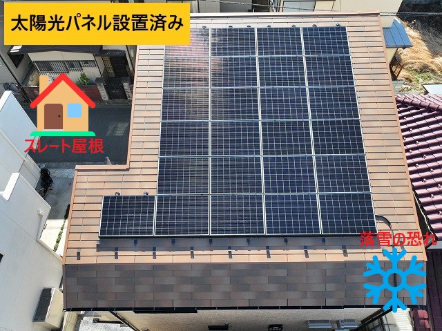 「太陽光パネルを設置したのですが、雪が降った際に屋根から一気に落ちてしまい、近隣の方にご迷惑がかかるのではないかと心配で…」