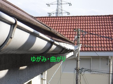 現地で点検を行うと、雨樋全体にゆがみや曲がりが確認できました。