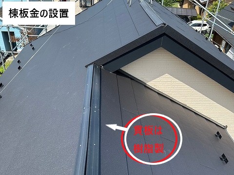 仕上げに棟板金を設置します。
