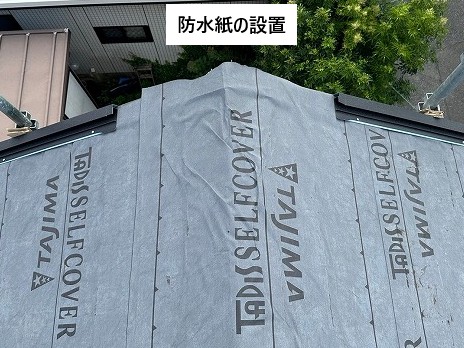 まずは既存の棟板金や貫板を撤去し、防水紙(ルーフィング)を屋根全体に敷設します。