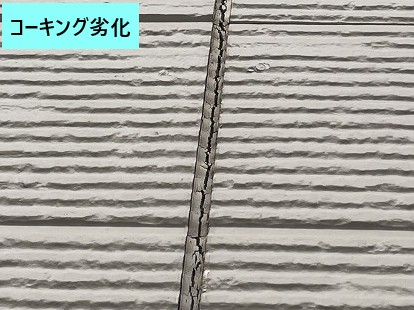 外壁材はサイディングで、塗膜の状態はまだ大きな問題はありませんでしたが、コーキング部分には・・