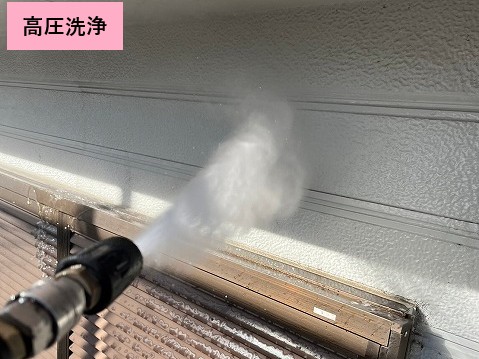 次に、高圧洗浄で外壁の汚れをしっかり落としていきます。